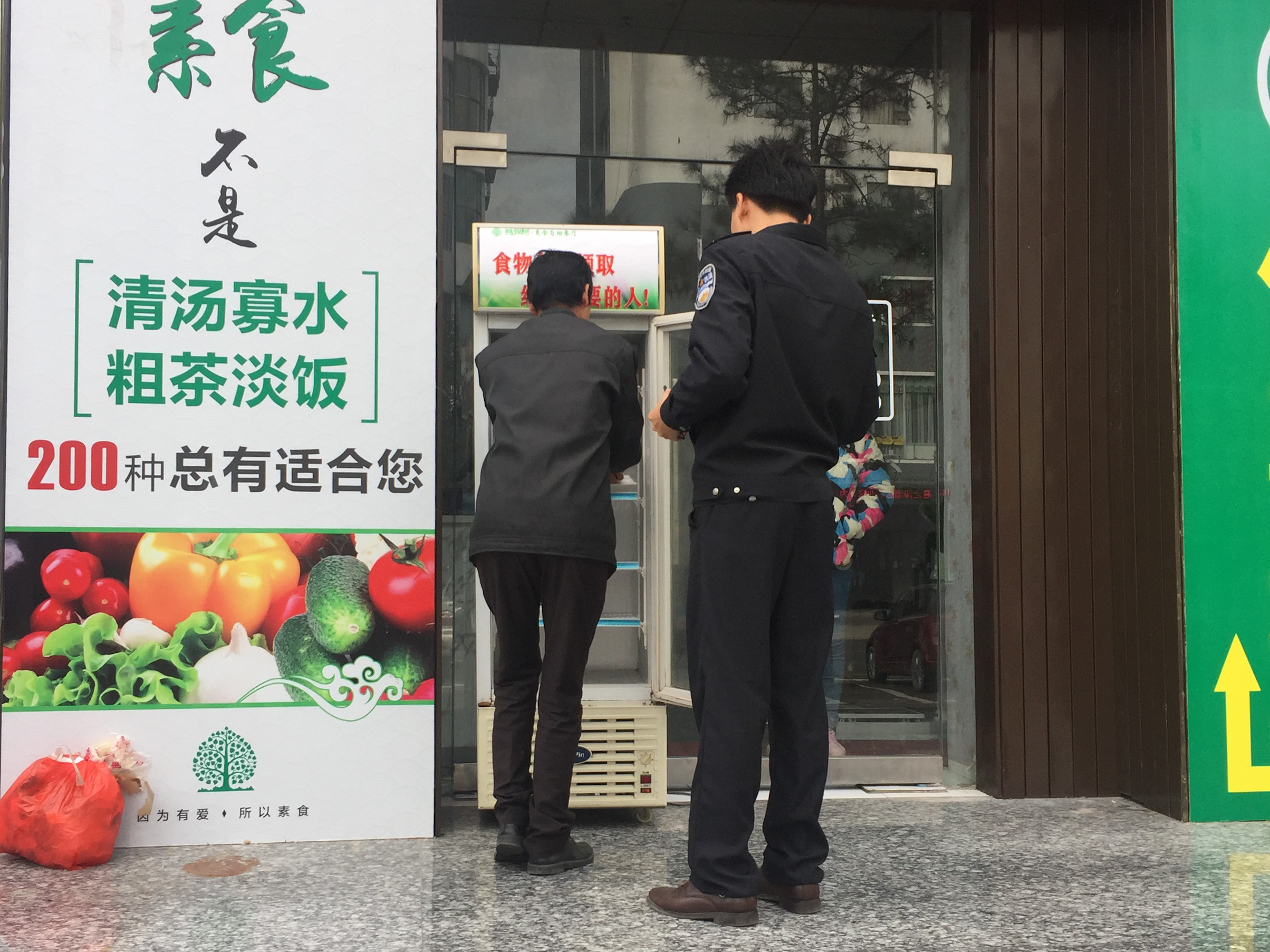 為了保證菜品的安全,餐廳工作人員會(huì)在晚上9點(diǎn)營業(yè)結(jié)束后,將保鮮柜回收,等第二天10點(diǎn)再將保鮮柜推出來。鄭傳寶說,雖然他有些擔(dān)憂會(huì)有一些無聊的人在在菜里面做手腳,影響食品安全。不過一個(gè)多月來,都沒有取菜的市民來反映過菜品的安全問題,他也就稍稍放心了,“我們放的菜,如果12小時(shí)內(nèi)沒人取,我們就會(huì)自己回收扔掉!