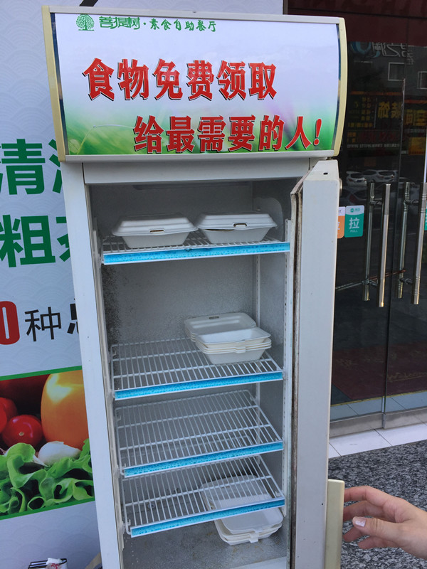 12月23日上午10時(shí)許,位于北海市區(qū)長青路的“菩提樹”素食自助餐廳里推出了一個(gè)保鮮柜,上方寫著“食物免費(fèi)領(lǐng)取,給最需要的人”,以此提醒市民可以免費(fèi)按需領(lǐng)取食物。一名工作人員正在往保鮮柜里放置裝著免費(fèi)菜肴的飯盒,每一個(gè)飯盒里裝著一個(gè)菜。餐廳服務(wù)員說,從11月19日開始,每天上午10時(shí)以及下午2時(shí),餐廳都會(huì)將打包好的菜品放在保鮮柜里供市民取用,截至目前已經(jīng)送出了1400多盒菜。