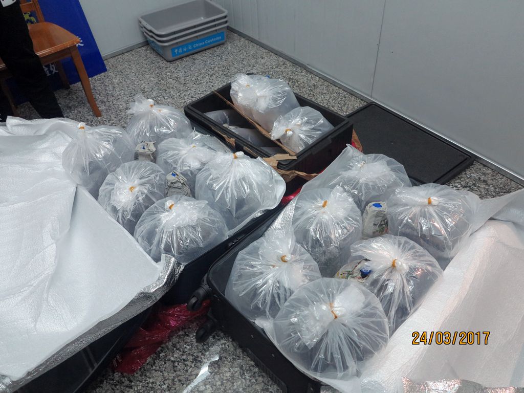 央廣網(wǎng)廣州3月27日消息(記者鄭澍 通訊員關(guān)悅)據(jù)廣州海關(guān)通報(bào),廣州海關(guān)隸屬白云機(jī)場(chǎng)海關(guān)3月24日晚在進(jìn)境渠道查獲兩名中國籍男性旅客利用六件托運(yùn)行李攜帶活魚苗入境,共計(jì)42包,約合88公斤。旅客自稱這些活魚苗為歐洲鰻魚苗,這是廣州海關(guān)首次在旅檢渠道查獲這類物種,已移交檢驗(yàn)檢疫部門鑒定、處理。
