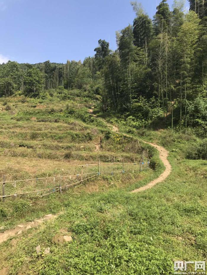 這里只有一條僅能容納一個(gè)人通過的土路彎彎曲曲的通進(jìn)大山的深處,而這條路曾經(jīng)就是陳建文唯一可以進(jìn)出大山的通道。踏上這條小路,記者才真真切切的感受到了山路的崎嶇,橫江村的山大多長(zhǎng)滿了南竹,竹筍更是遍地都是,往往是走著走著就會(huì)遇到一根竹筍橫插在路中間,又或者就走在斷崖的邊上,下面都是橫長(zhǎng)在崖壁上的樹木,上山的路雖然只有4、5公里,我們卻走了將近一個(gè)小時(shí),一路上跟同行的扶貧工作組組員譚光華聊天才知道。