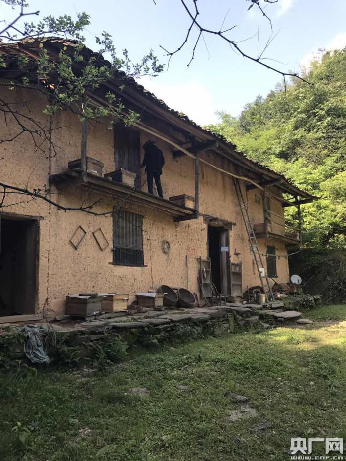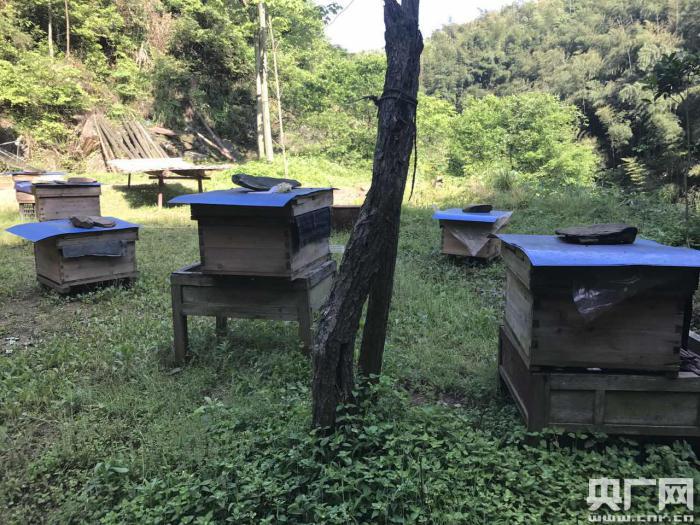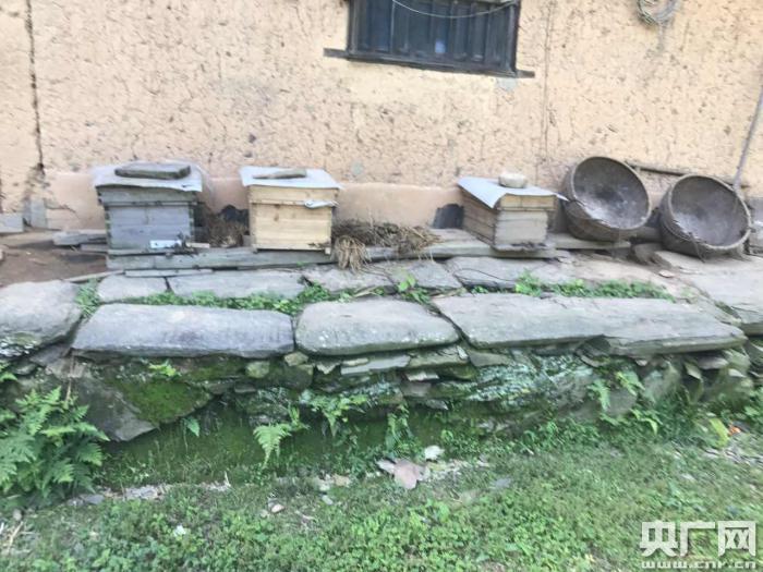 來到陳建文家里的時(shí)候,他正在擺弄他養(yǎng)殖的蜜蜂,一片不大的院子里面分散擺放著十幾箱蜜蜂。