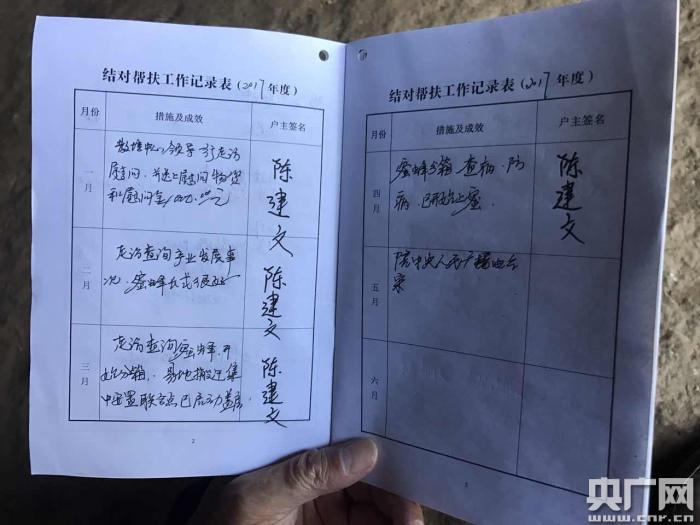 他說他每次來都會(huì)要把到這里做了什么填進(jìn)去,有步驟的幫扶貧困戶。天色漸晚,我們一行人告辭原路返回,回去的路上,老譚跟我講,其實(shí)這一年多來,在這個(gè)村子里面感覺變化最大的就是陳建文,“宋記者你不知道,我第一次來的時(shí)候,他見我都躲著我,說話也不敢看我,很自卑!崩献T50多歲的年紀(jì),走起山路依然健步如飛,“有一次,都晚上十點(diǎn)了,陳建文給我發(fā)微信語音,聲音特別大,說“譚主席,我要出去玩。!”,他單身這么多年,也真的是不容易!笨斓缴侥_下的時(shí)候,路變得很寬敞,我與老譚并肩走著,他說“我們單位(株洲市教師培訓(xùn)中心)是他的結(jié)對(duì)幫扶單位,我們的領(lǐng)導(dǎo)當(dāng)時(shí)來這里的時(shí)候就跟陳建文說了,到你結(jié)婚的時(shí)候,我們組織單位所有領(lǐng)導(dǎo)來參加你的婚宴,我給你做證婚人,再送你一個(gè)大彩電!”(央廣記者 宋賀)