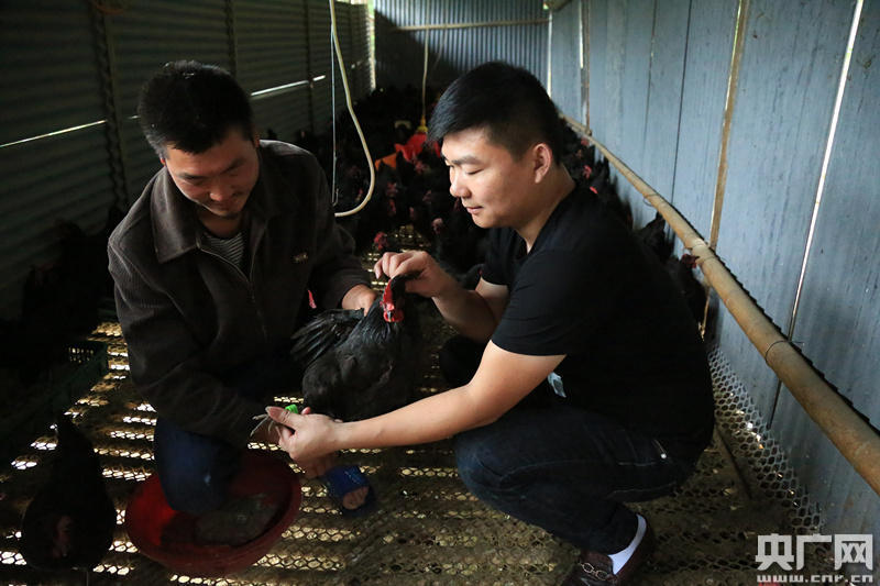如何真正讓扶貧工作變“輸血”為“造血”?益陽(yáng)市人大常委會(huì)副主任陳佑才和副市長(zhǎng)李偉掛帥指導(dǎo),多次實(shí)地考察調(diào)研。在扶貧工作隊(duì)的幫助下,村里結(jié)合實(shí)際,引進(jìn)益陽(yáng)天潤(rùn)農(nóng)業(yè)發(fā)展有限公司,成立天潤(rùn)關(guān)山養(yǎng)殖合作社。為了給彭拳卷一個(gè)寬松的創(chuàng)業(yè)環(huán)境,村里協(xié)助其流轉(zhuǎn)了200多畝山地,并給予政策上的幫扶!爸醒胍恢闭f(shuō)要推進(jìn)農(nóng)業(yè)供給側(cè)結(jié)構(gòu)性改革,我的理解就是改變供給。”孫瑞科說(shuō)。就這樣,“關(guān)山土雞”應(yīng)運(yùn)而生。2016年3月,基地開(kāi)始籌建選址,5月正式養(yǎng)殖。2017年3月,規(guī)模發(fā)展到2萬(wàn)多羽只,產(chǎn)值達(dá)到80多萬(wàn)元。