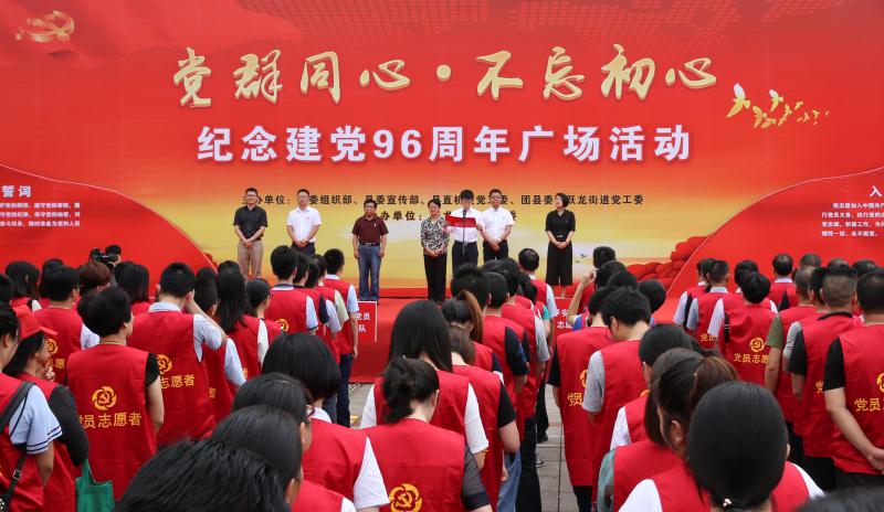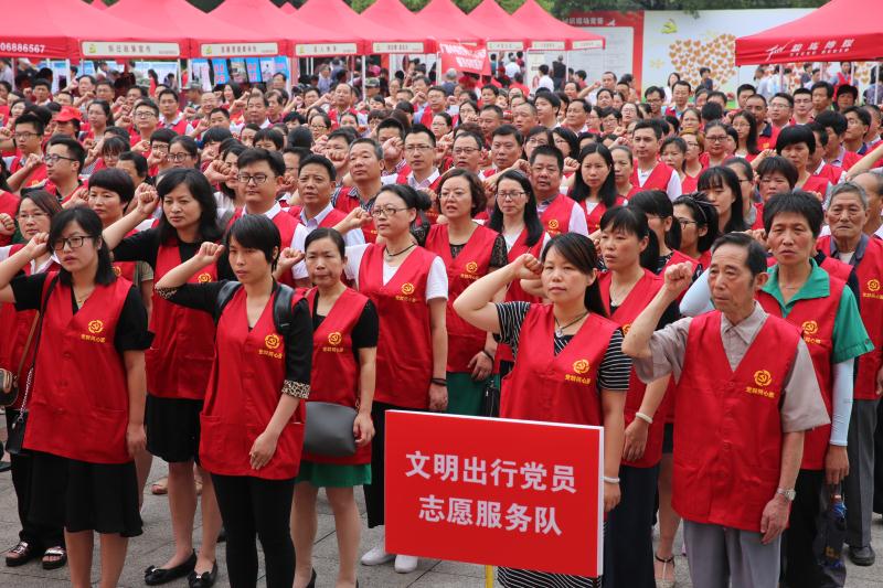 央廣網(wǎng)寧波6月29日消息(記者曹美麗 通訊員陳云松)“履行黨員義務,執(zhí)行黨的決定,嚴守黨的機密,對黨忠誠……”今天上午,在寧波市寧?h潘天壽廣場舉行的“黨群同心·不忘初心”紀念建黨96周年廣場活動上,該縣躍龍街道轄區(qū)內(nèi)的政策宣講黨員志愿服務隊、治水剿劣黨員志愿服務隊等7支黨員志愿服務隊共500多名黨員志愿者集體宣誓,重溫入黨誓詞,并開展認領微心愿、政策宣講、醫(yī)療保健、愛心義賣、便民服務、愛心獻血等現(xiàn)場志愿服務,獲得了群眾的點贊。