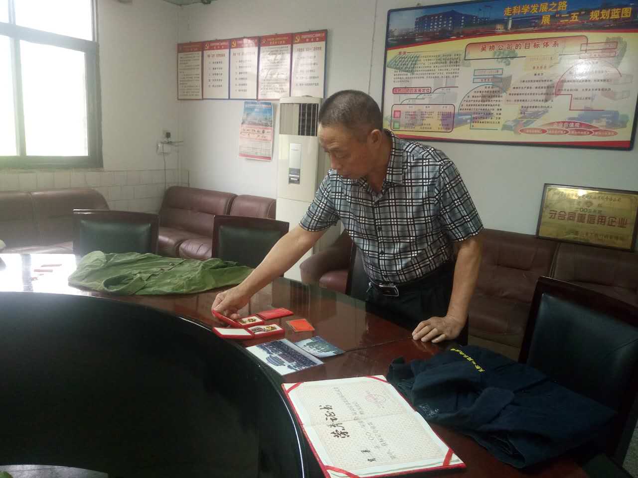 該退伍士兵榮譽室位于吳橋建材公司廠區(qū)辦公樓內(nèi),李德高倡導辦退伍士兵榮譽室的想法得到了當?shù)仉p擁辦、村組以及軍民共建先進單位的支持,更得到了20余名退役士兵的積極響應。大家紛紛把自己從軍路上具有紀念意義的舊軍裝、優(yōu)秀士兵勛章、退役士兵證書、軍用水壺等軍用品以及轉(zhuǎn)業(yè)、退伍到地方曾經(jīng)工作過的勞保手套、獎狀、照片等交到了老人的手里。
