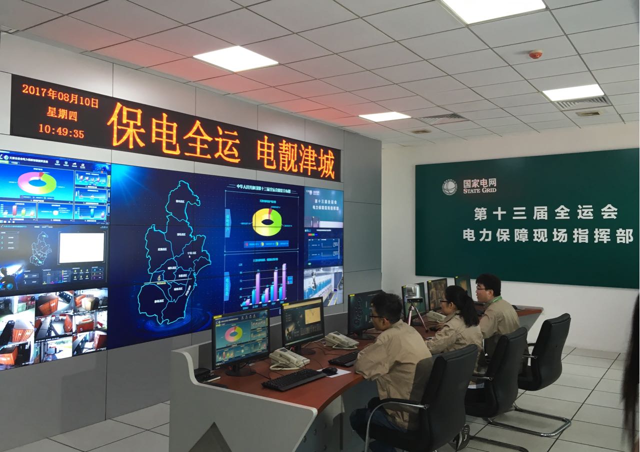 在奧林匹克中心體育場(chǎng)內(nèi)還有一支“網(wǎng)軍”,室內(nèi)一面墻上豎立著一塊大屏幕,標(biāo)示著:“天津全運(yùn)會(huì)電力保障智能指揮平臺(tái)”。這個(gè)平臺(tái)基于地理信息背景,整合了生產(chǎn)管理信息、營銷業(yè)務(wù)、調(diào)度自動(dòng)化系統(tǒng)等9個(gè)業(yè)務(wù)系統(tǒng),構(gòu)建了以實(shí)時(shí)監(jiān)控、應(yīng)急指揮、輔助分析為核心的可視化指揮平臺(tái),為全運(yùn)會(huì)電力保障指揮工作提供支撐。同時(shí)平臺(tái)通過“大數(shù)據(jù)+移動(dòng)作業(yè)”手段,打造全景可視化保電模式,實(shí)現(xiàn)了全過程動(dòng)態(tài)顯示和信息共享,使保電狀態(tài)處于全景可控在控狀態(tài)。
