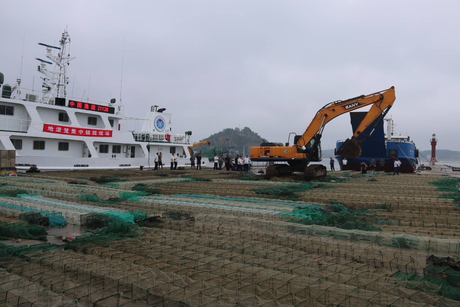 央廣網(wǎng)大連8月24日消息(記者田彤 張四清 通訊員楊淑革)記者昨天在遼寧省長?h大長山島鎮(zhèn)四塊石漁港看到,在漁政所工作人員的指揮下,一臺大型挖掘機正對依次排列的地滾籠進行集中銷毀,價值10萬多元的1000個地滾籠瞬間變成廢品。為嚴(yán)厲打擊違規(guī)捕撈行為,保護海島近岸漁業(yè)資源,長?h在全縣范圍內(nèi)再次開展地滾籠集中銷毀活動,現(xiàn)場一次性銷毀地滾籠3000余個,彰顯了海島清理和取締違規(guī)漁具的信心和決心。