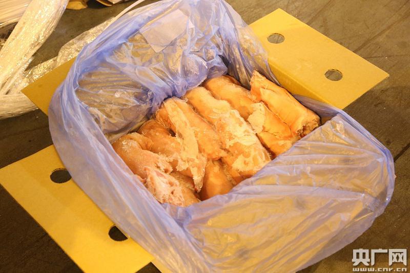在現場,海警官兵查扣非法入境的2500噸級外籍走私船1艘,抓獲犯罪嫌疑人12人,其中緬甸籍船員9名;現場查扣40英尺集裝箱50只,其中冷凍箱23只。其中,在查獲的500余噸豬、牛內臟、鴨掌、雞爪等凍品中,經確認有300余噸來自疫區(qū)。這些凍品在被偷運入境的過程中,輾轉經過境外多個國家與地區(qū),其中部分凍品在被海關查獲時,已經解凍并淌出血水,散發(fā)出陣陣腐臭。在經有關部門鑒定確認后,將對該批凍品進行銷毀處理。此外,查獲的走私物品中還有部分廢舊電腦配件、廢舊輪胎等屬于國家禁止進口的貨物,就是俗稱的“洋垃圾”,也將依法予以妥善分類處理。