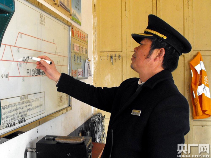 何光海說,“車站就是我們的家,一輩一輩黃絲小站鐵路人在小站上的堅守,守來44年的春運的安全,值!”。(央廣網(wǎng)發(fā) 姜澤鵬攝影)