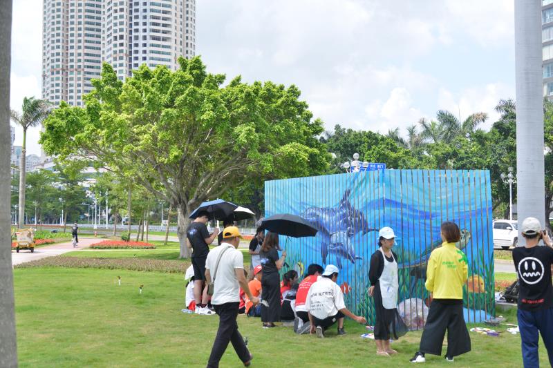 今天上午,在情侶路珠海博物館對面的海邊,一個面積達(dá)26平方米的變電箱展現(xiàn)在記者面前,來自北師大珠海分校美術(shù)社及繼續(xù)教育學(xué)院青年志愿者協(xié)會的20多名大學(xué)生和市民朋友現(xiàn)場展示手藝,一起繪制巨幅的“海洋環(huán)保圖”。經(jīng)過前期和現(xiàn)場繪制,變電箱與周邊環(huán)境融為一體。箱體上的海豚活靈活現(xiàn),繪畫極具空間感。據(jù)正方控股相關(guān)負(fù)責(zé)人介紹,此次為配合情侶路沿線的整體景觀形象,以細(xì)節(jié)體現(xiàn)“城市名片”的特色風(fēng)貌,正方控股對情侶路沿線227個垃圾桶及565㎡變電箱進(jìn)行了美化,通過在箱體表面繪制出五彩斑斕的海底世界,以此展現(xiàn)出珠海作為濱海城市、生態(tài)文明領(lǐng)跑者的城市特色。