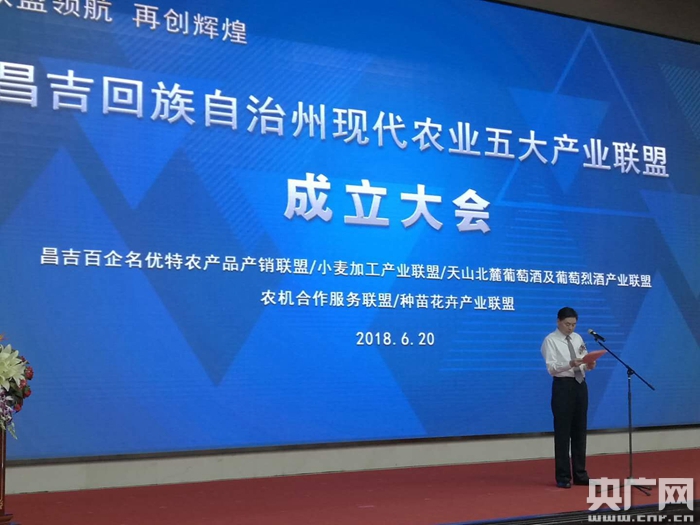 新成立的昌吉現(xiàn)代農(nóng)業(yè)五大產(chǎn)業(yè)聯(lián)盟由百企名優(yōu)特農(nóng)產(chǎn)品產(chǎn)銷聯(lián)盟、天山北麓葡萄酒業(yè)聯(lián)盟、農(nóng)機(jī)合作服務(wù)聯(lián)盟、種苗花卉業(yè)聯(lián)盟和小麥加工業(yè)聯(lián)盟共同組成。