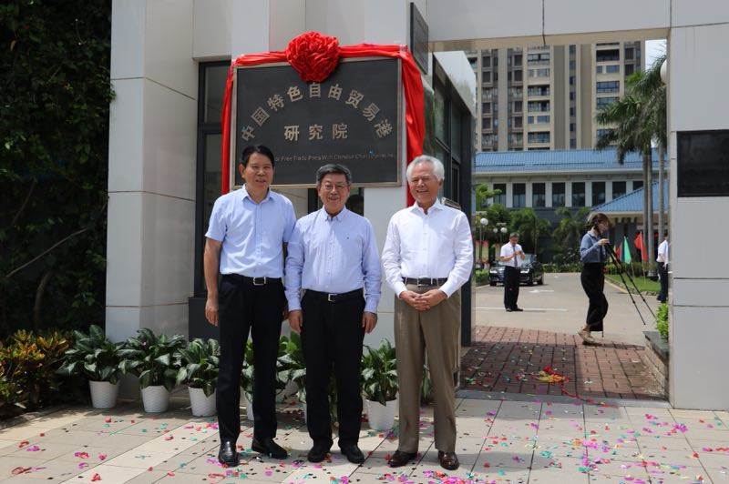 中國(guó)特色自由貿(mào)易港研究院院長(zhǎng)遲福林、副院長(zhǎng)吳士存、朱華友共同為研究院揭牌