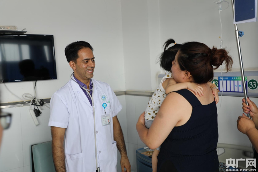 比拉爾·海帝(左)查看小患者的恢復情況(央廣網發(fā) 阿琳娜 攝)