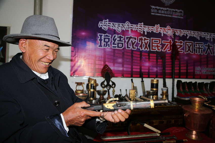 農(nóng)民選手們紛紛展示了精心準(zhǔn)備的服飾、鐵器、唐卡、酥油花、藏式家具等展品,為前來(lái)參觀的干部群眾送上了一場(chǎng)視覺(jué)盛宴。據(jù)了解,全場(chǎng)共有9個(gè)文藝類節(jié)目、12個(gè)絕技類作品、14個(gè)絕活類展品參加比賽,最終7個(gè)選手成功晉級(jí)。獲獎(jiǎng)的選手將在7月29日亮相“2018西藏·瓊結(jié)第三屆吐蕃文化旅游節(jié)”閉幕式,在閉幕式上進(jìn)行統(tǒng)一頒獎(jiǎng)。