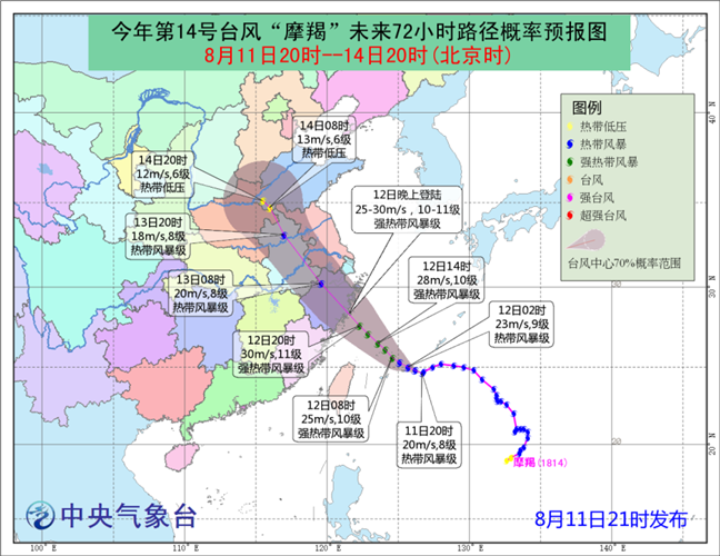 今年第14號臺風(fēng)“摩羯”未來72小時(shí)路徑概率預(yù)報(bào)圖。(資料圖:來源中央氣象臺官網(wǎng))