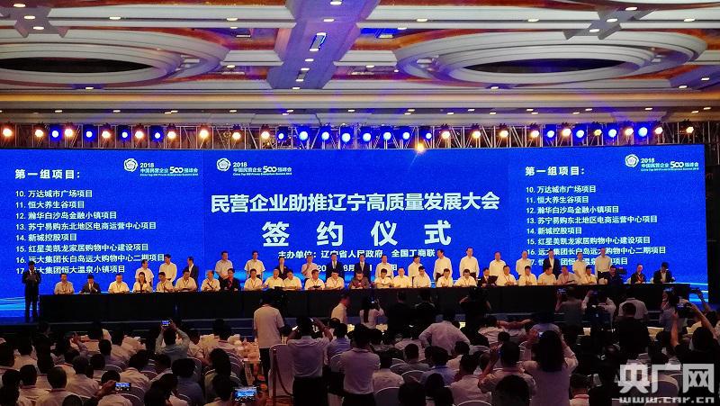 眾多民營企業(yè)500強(qiáng)與遼寧省簽約大項(xiàng)目(央廣網(wǎng)記者 賈鐵生 攝)
