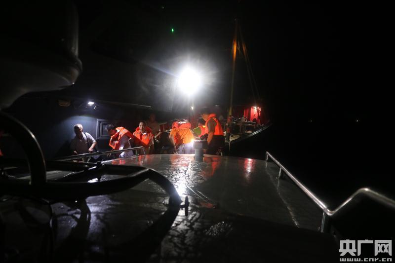 云澳中隊(duì)及漁政船值班人員對(duì)遇險(xiǎn)船員進(jìn)行救援 (央廣網(wǎng)發(fā) 粵漁政供圖)