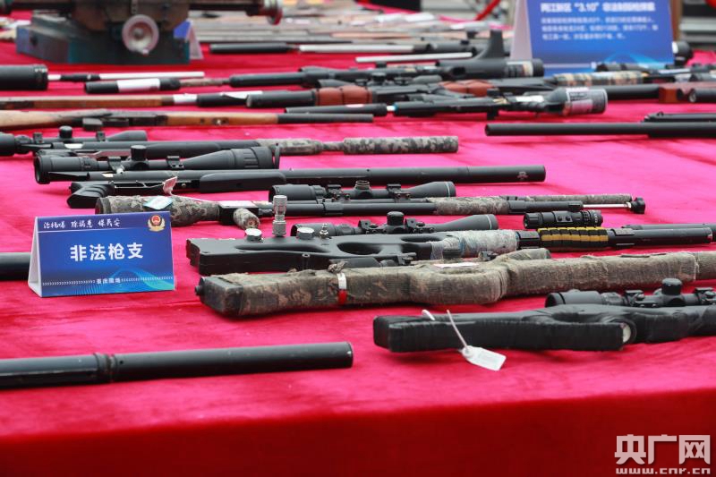 現(xiàn)場展示非法槍支(央廣網(wǎng)發(fā) 重慶市公安局供圖)