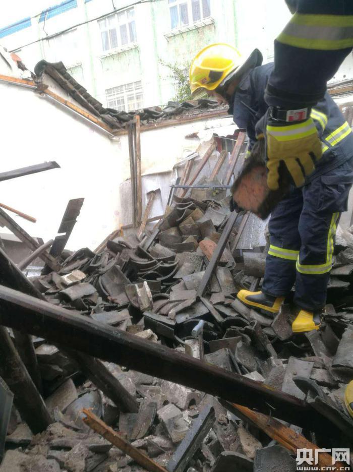因突遭雷暴天氣,今天中午13時30分左右,寧波市鎮(zhèn)海區(qū)蛟川街道虹橋老村后一間房屋突發(fā)倒塌,造成一名老人被埋。接警后趕到現(xiàn)場的消防隊員隨后徒手將該老人從廢墟中救出,并火速送往醫(yī)院救治。