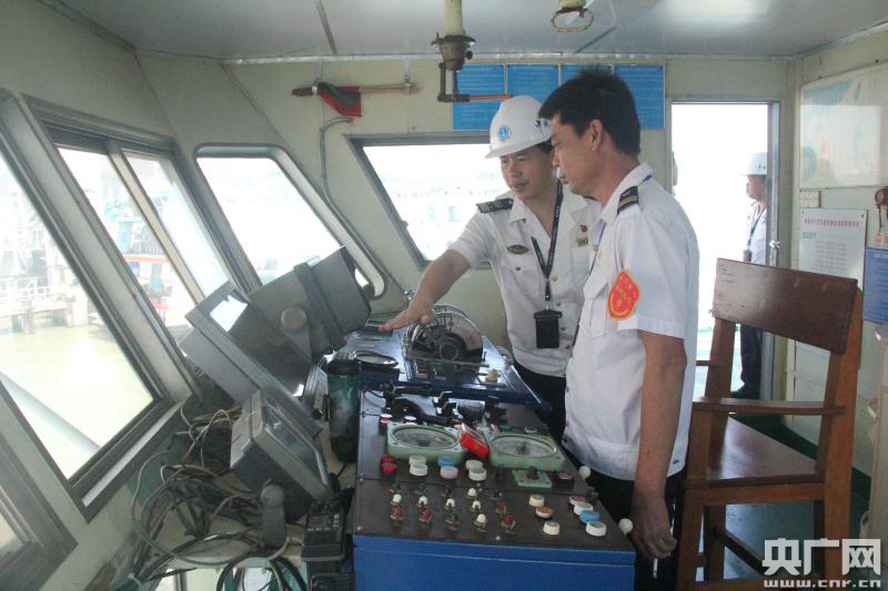 海事執(zhí)法人員檢查虎門輪渡船舶安全設施(央廣網(wǎng)發(fā) 宋騰飛 攝)
