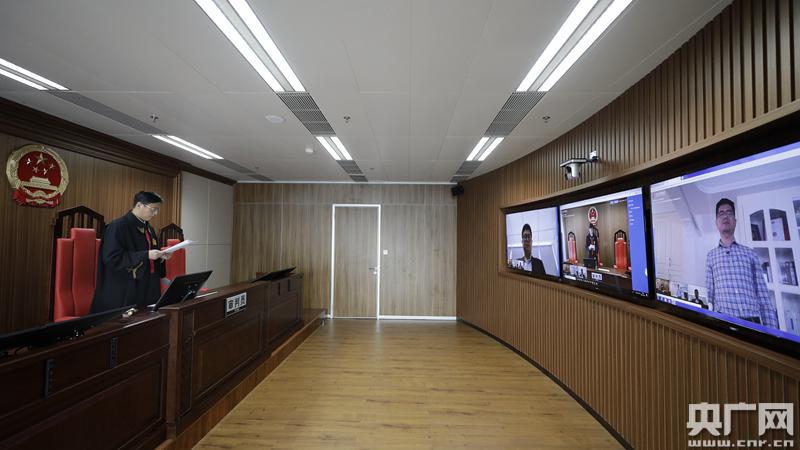 法庭位于廣州琶洲互聯(lián)網(wǎng)產(chǎn)業(yè)集聚區(qū)的環(huán)球貿(mào)易中心,原告在距離法庭二十多公里的番禺家中,被告則遠在杭州。原告、被告通過網(wǎng)絡“進入”庭審現(xiàn)場,“出現(xiàn)”在審判席對面的大顯示器上。法官端坐屏幕前,嚴格按訴訟程序,主持雙方當事人通過實時畫面、聲音,有序“隔空”舉證、質(zhì)證和辯論。經(jīng)審理,法官當庭判決天貓公司賠償鄭某1元。