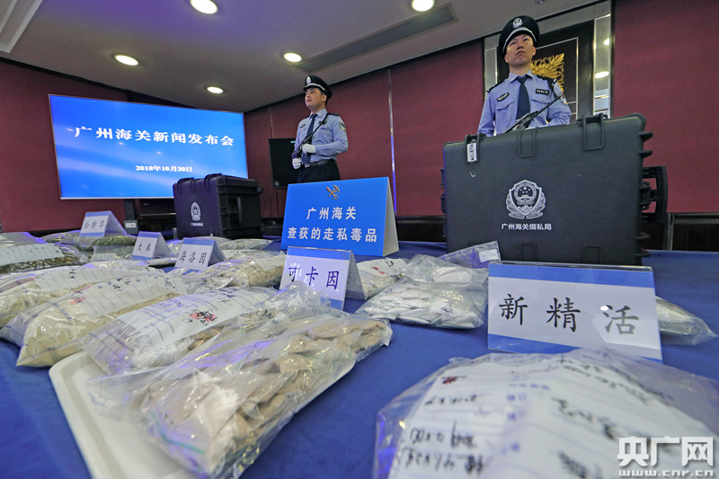 廣州海關舉行新聞發(fā)布會,通報近期打擊跨國毒品犯罪有關情況(央廣網(wǎng)發(fā) 池兆恩 攝)