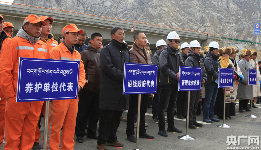 G4218拉薩至日喀則機(jī)場(chǎng)段公路新建工程(控制性工程)開工(央廣網(wǎng)記者 普布次仁 攝)