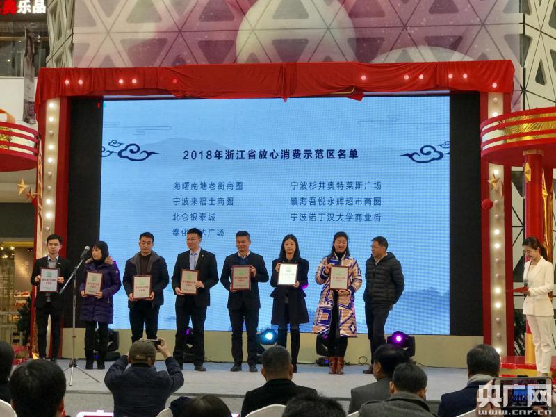 活動現(xiàn)場,寧波市市場監(jiān)管局發(fā)布了2018年浙江省放心消費示范區(qū)名單并授牌。此次獲得2018年浙江省放心消費示范區(qū)名單的有海曙南塘老街商圈、寧波來福士商圈、寧波杉井奧特萊斯廣場、寧波諾丁漢大學(xué)商業(yè)街、北侖銀泰城等14個商圈。