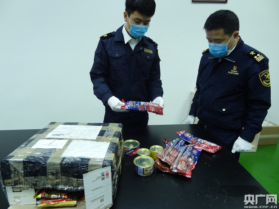 1月9日,廣州海關(guān)隸屬廣州郵局海關(guān)現(xiàn)場關(guān)員在對一票自波蘭寄往廣東佛山的郵件實(shí)施過機(jī)查驗(yàn)時(shí),發(fā)現(xiàn)X光機(jī)圖像顯示內(nèi)有紅色條狀物品,疑似肉制品。開箱查驗(yàn)發(fā)現(xiàn)有豬肉腸11袋、火腿1袋、肉罐頭4個(gè),共2.26千克。根據(jù)相關(guān)法規(guī),關(guān)員對該郵件予以截留并對其中肉類制品作銷毀處理。