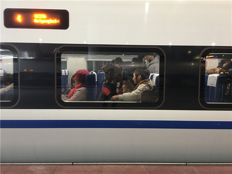 春運第一天貴陽北站高鐵動車組列車發(fā)車現(xiàn)場 (央廣記者 張兆福攝)