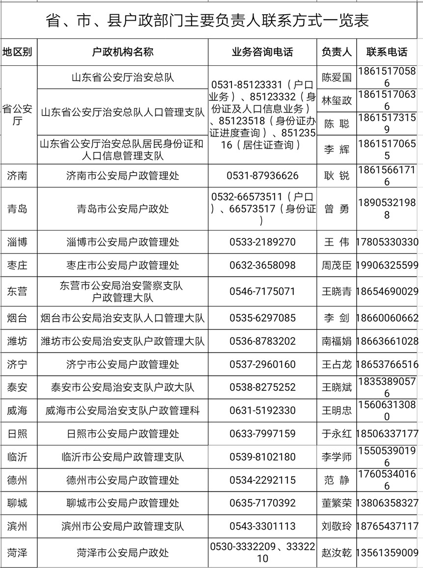 央廣網(wǎng)濟(jì)南2月25日消息(記者劉穎超 通訊員劉貴增)記者25日從山東省公安廳獲悉,為貫徹落實(shí)全省“擔(dān)當(dāng)作為、狠抓落實(shí)”工作動(dòng)員大會(huì)精神,山東省公安廳即日起向社會(huì)公開(kāi)省、市、縣三級(jí)戶(hù)政部門(mén)負(fù)責(zé)人電話(huà)以及各地戶(hù)政部門(mén)業(yè)務(wù)咨詢(xún)電話(huà),為群眾提供全天候、全時(shí)空服務(wù),進(jìn)一步拓寬群眾辦理戶(hù)口、居民身份證咨詢(xún)、監(jiān)督、投訴渠道,更好地提升群眾獲得感、幸福感和滿(mǎn)意度。