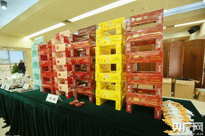 央廣網(wǎng)重慶2月27日消息(記者陳鵬)近日,重慶市公安局、重慶市煙草專賣局聯(lián)合召開“黎明”專項行動通報會,通報專項行動中破獲的特大制售假煙團伙案,該案共抓獲犯罪嫌疑人36人,查獲制假窩點4個,查獲大型卷接煙機、包裝機、封口機、激光打碼機、鋼印機等制假設(shè)備,查獲假冒偽劣卷煙合計223萬支、煙絲28.4噸、其他原輔材料100余噸,涉案金額上億元。