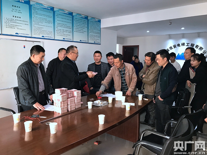 巴中維權人員把討回工資發(fā)給民工(央廣網(wǎng)發(fā) 巴中總工會供圖)