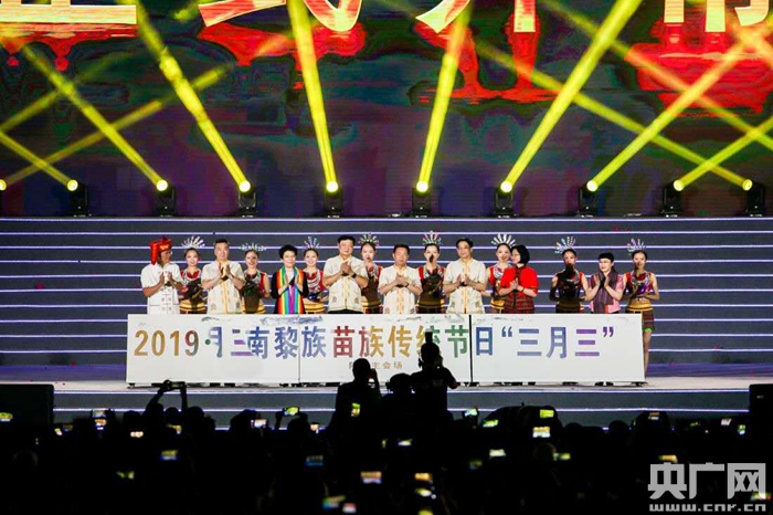 央廣網(wǎng)陵水4月8日消息(記者朱永)4月7日晚,2019年海南黎族苗族傳統(tǒng)節(jié)日“三月三”主會(huì)場開幕式暨主題文藝晚會(huì)在陵水黎族自治縣海航體育場盛大啟幕。