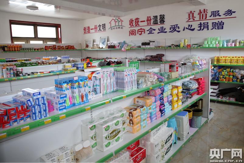 在愛心公益超市,貨架上整齊地擺放著食品及一些生活日用品,而與普通超市不一樣的是這里的部分商品村民可以憑積分免費兌換,商品由福建及當(dāng)?shù)貝坌娜耸烤栀,未來還將引入市場機制,由運營者市場化管理,自負盈虧,政府補貼兌換短缺部分。