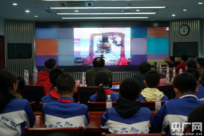 在北海局應急指揮廳內,來自青大附中的同學們正在聚精會神地通過視頻連線,觀看科考隊員們布放潛水器“海龍Ⅲ”,準備開始本航次第三航段第七次下潛作業(yè)。船上科考隊員介紹,本航段,在母船“大洋一號”船的配合下,“海龍Ⅲ”搭載多種自主研發(fā)監(jiān)測探查針及取樣設備,現(xiàn)已完成了六次下潛作業(yè),原位觀測到海底大量大型底棲動物、潔凈海水、底棲魚類、深海沉積物等多種樣品,進行了多種原位參數(shù)測量!昂}垻蟆盧OV是由大洋協(xié)會支持、由上海交通大學葛彤教授團隊研發(fā)的新一代國產化、大功率、作業(yè)型的水下無人遙控潛水器,特別適用于深?茖W考察作業(yè)。