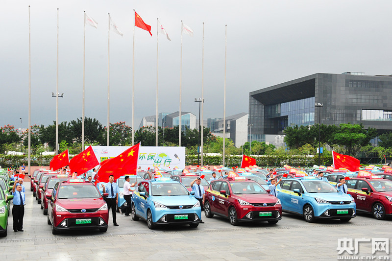 1500輛純電出租車現(xiàn)場出車投入營運。(央廣網(wǎng)發(fā) 主辦方供圖)