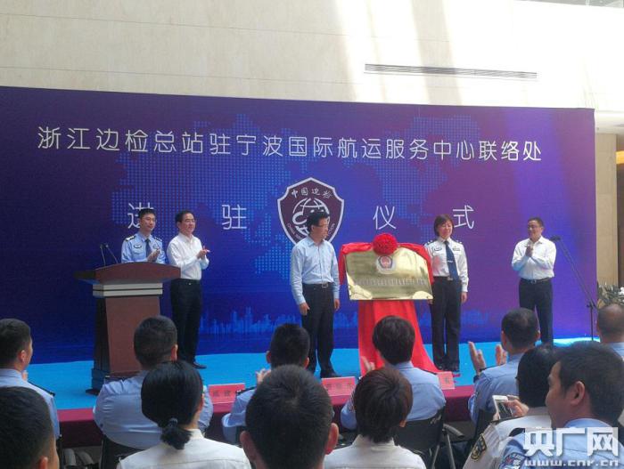 浙江邊檢總站駐寧波國際航運服務中心聯(lián)絡處揭牌(央廣網記者 杜金明 攝)