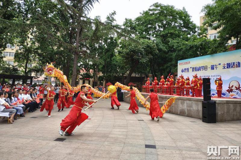 精彩的舞龍表演讓社區(qū)居民大呼過癮(央廣網(wǎng)記者 王偉 攝)
