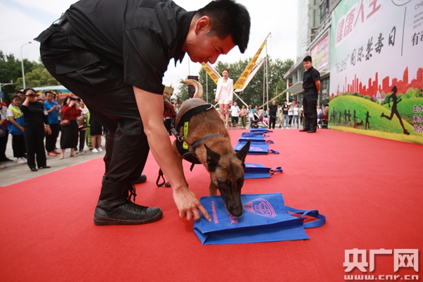 活動期間向新成立的“城陽區(qū)禁毒陽光志愿服務(wù)驛站”和禁毒志愿者代表授牌和授旗,F(xiàn)場60名禁毒志愿者代表進行了宣誓,并莊嚴承諾。城陽公安分局兩條緝毒犬進行了現(xiàn)場模擬搜毒表演,現(xiàn)場觀眾上臺隨機擺放6個樣品道具(其中一個裝有冰毒),再由緝毒犬上臺嗅聞搜索,贏得現(xiàn)場陣陣喝彩與掌聲。現(xiàn)場的禁毒知識有獎問答、毒品及吸販毒工具展示和由禁毒志愿者、禁毒社工、現(xiàn)場群眾在“健康人生、綠色無毒”倡議百米橫幅上簽名,營造了濃厚的現(xiàn)場宣傳氛圍,收到了良好的社會效果。