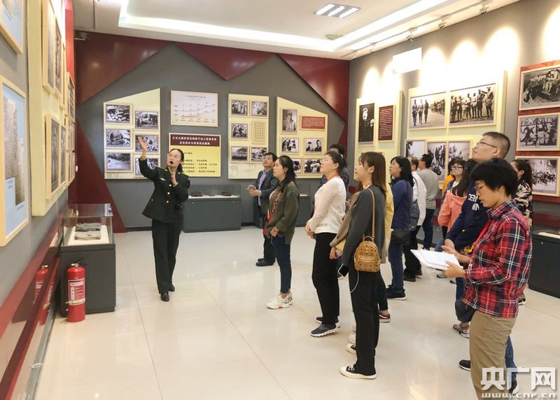 北線采訪團(tuán)在南泥灣采訪(央廣網(wǎng)記者 舒隆煥 攝)