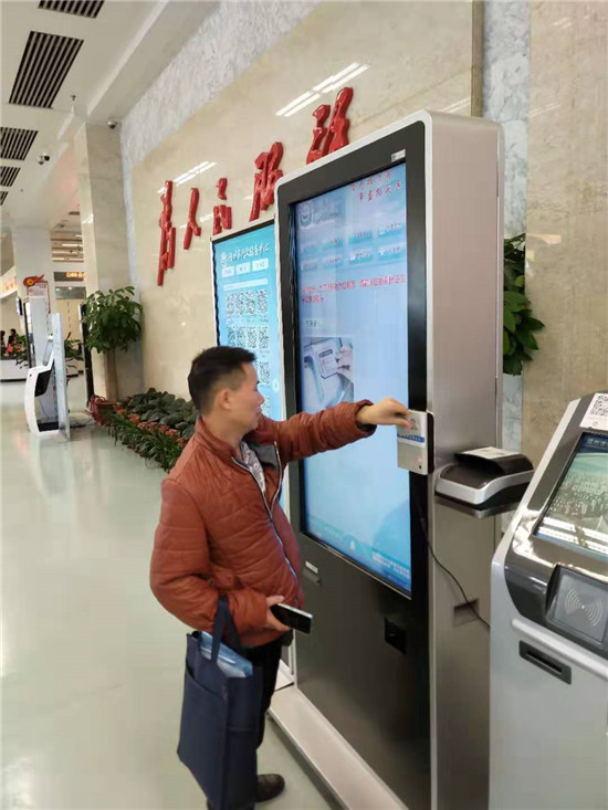 在福州市行政服務(wù)中心辦事大廳,市民正在刷身份證自助取號(hào) 攝影 王禮林