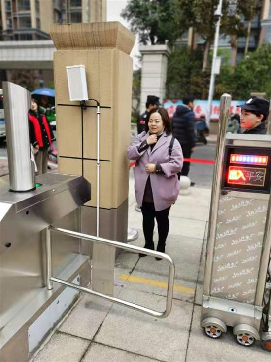 來(lái)幼兒園接孩子的家長(zhǎng)正在門(mén)口“刷臉” 攝影 王禮林