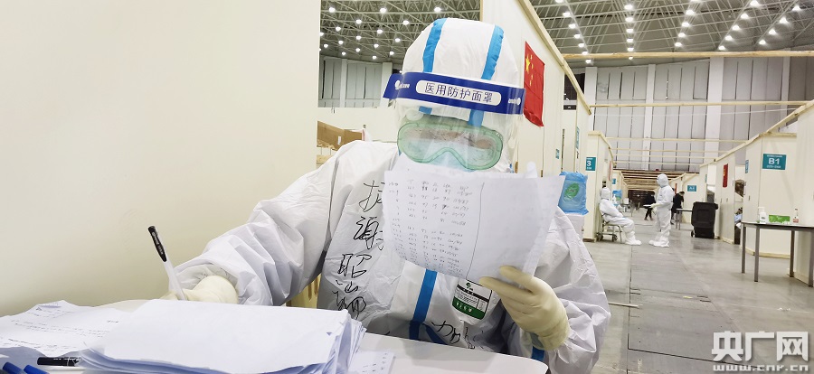 謝昭端在武漢客廳方艙醫(yī)院工作中(央廣網(wǎng)發(fā) 通訊員供圖)