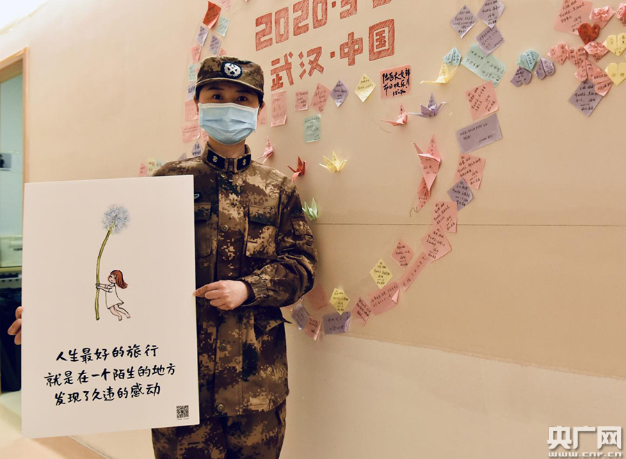 所以,曾欽婭專門挑了一幅寫有:人生最好的旅行就是在陌生的地方發(fā)現(xiàn)了久違的感動(dòng)。她說(shuō):“武漢人民的平安及笑臉,也是支持我們繼續(xù)前行的動(dòng)力!”
