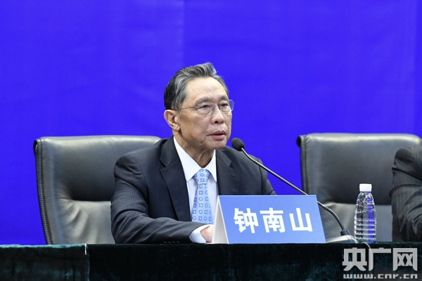 鐘南山院士在通氣會現(xiàn)場發(fā)言。(央廣網(wǎng)記者 官文清 攝)