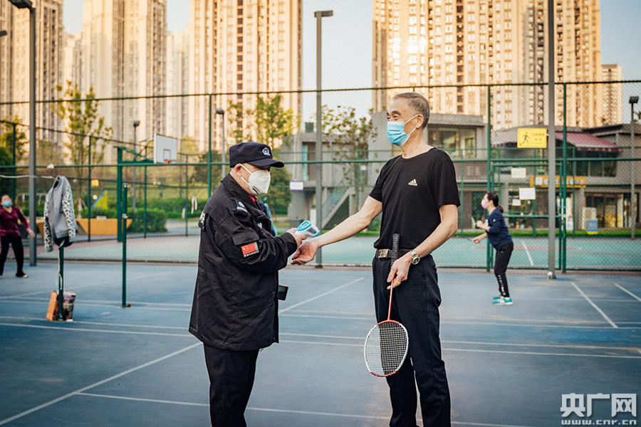 記者上午在趙家山體育文化公園看到,管理單位在園內人群較多的地方設置了體溫監(jiān)測點,隨時對入園市民進行體溫檢測。乒乓球臺、籃球場、羽毛球場地已經被市民充分利用起來。來鍛煉的張學武先生是附近小區(qū)的居民,他說,自己平時就喜歡打打球,喜歡運動,可疫情不能隨意出門,把他憋壞了,“我家就住在這個公園旁邊的樓上,在陽臺上能看到公園的全貌。今天一早我看到公園開放了,就趕緊過來運動一下,恢復一下”。