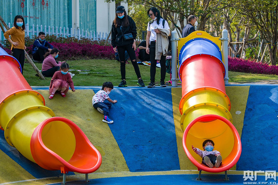 小朋友在公園內玩滑梯(央廣網發(fā) 規(guī)劃自然資源局供圖)