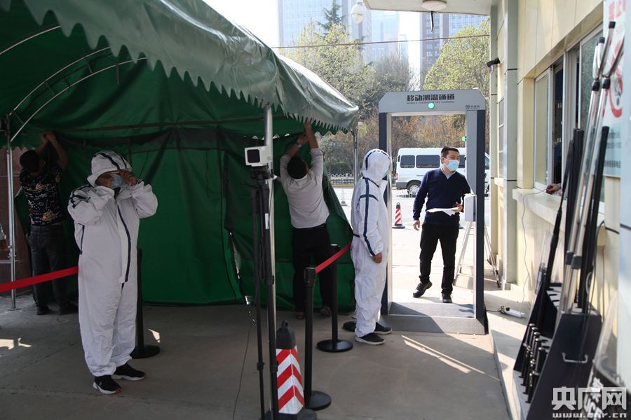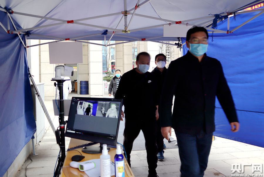 演練模擬使用學生入校全自動熱成像測溫篩查系統(tǒng)(央廣網(wǎng)發(fā) 張志輝 攝)
