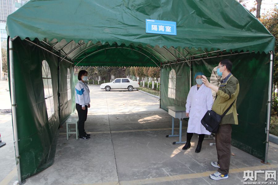 調(diào)式學生入校體溫檢測設施(央廣網(wǎng)記者 舒隆煥 攝)